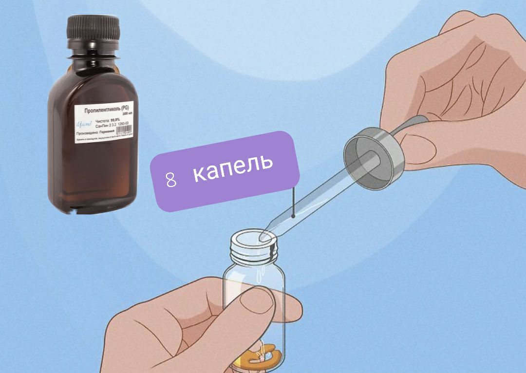 - Добавьте 8 капель пропиленгликоль на 0,5 грамма смолы.